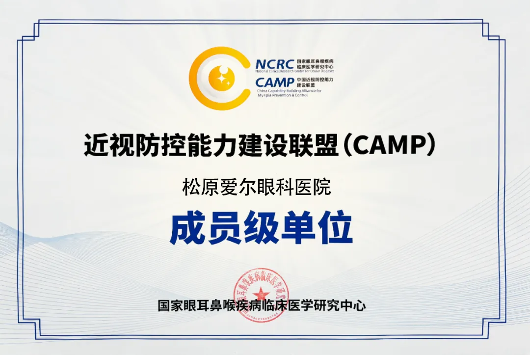 喜報(bào)!松原愛(ài)爾眼科醫(yī)院榮膺中國(guó)近視防控能力建設(shè)聯(lián)盟(CAMP)成員級(jí)單位